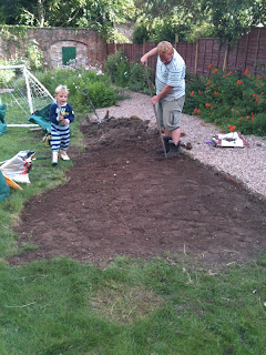 And then towards the end of July it started to look a like this as, over the course of a few days hubby and I (mostly hubby) dug up the plants and weeds, replanting the plants we wanted (the fuschia, a hellebore and a seedum) and giving/throwing away the ones we didn't (ie those darn geraniums and anemones.)
